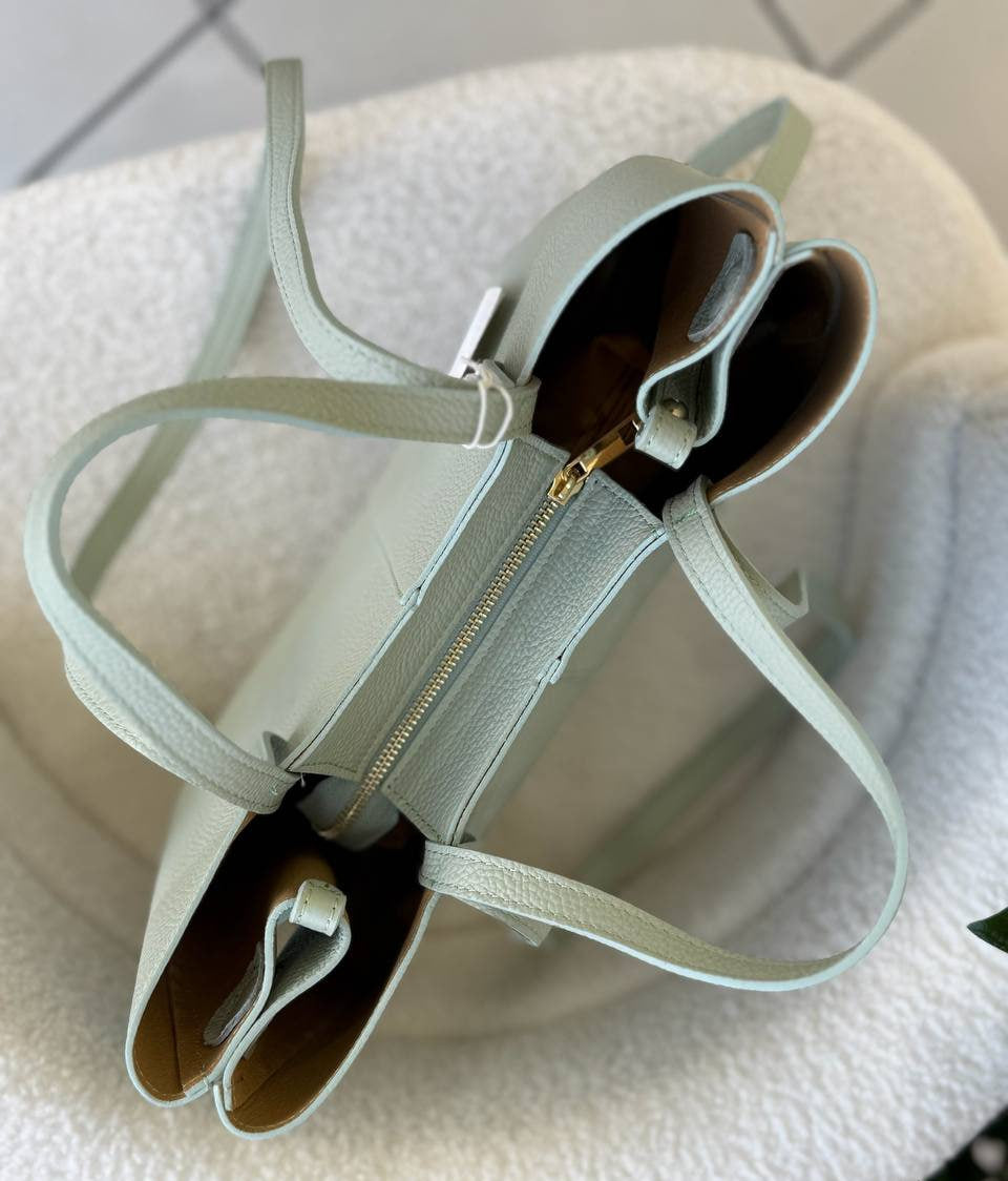 A clean, modern tote bag crafted from genuine Italian leather. Soft yet structured, it’s designed for everyday use with enough space for essentials while maintaining an elegant silhouette. The bag features comfortable double handles and a removable zip pouch, perfect for organizing smaller items.